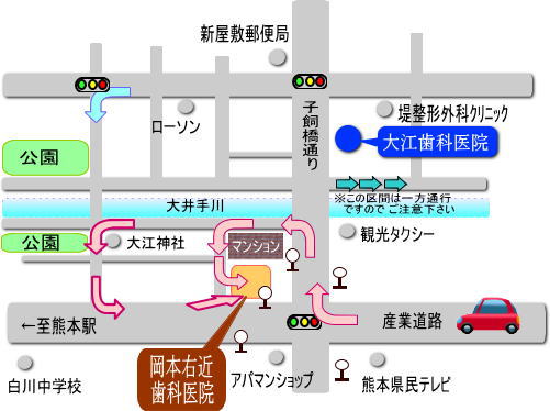 大江渡鹿交差点(産業道路と子飼橋通りとの交差点)のそばです